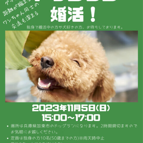ドッグラン婚活🐕~距離がグッと縮まる~(加東市・三田市・小野市・三木市・西脇市・加古川市・明石市・神戸市・多可町・姫路市)