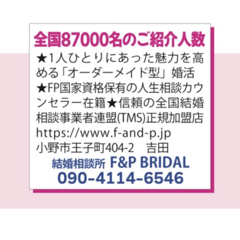 F&P BRIDAL 出張型結婚相談所の在り方について♪(兵庫県西脇・加東・加西・三田・三木・明石・加古川・神戸・姫路・多可・丹波・神崎・西宮・尼崎など兵庫全域)