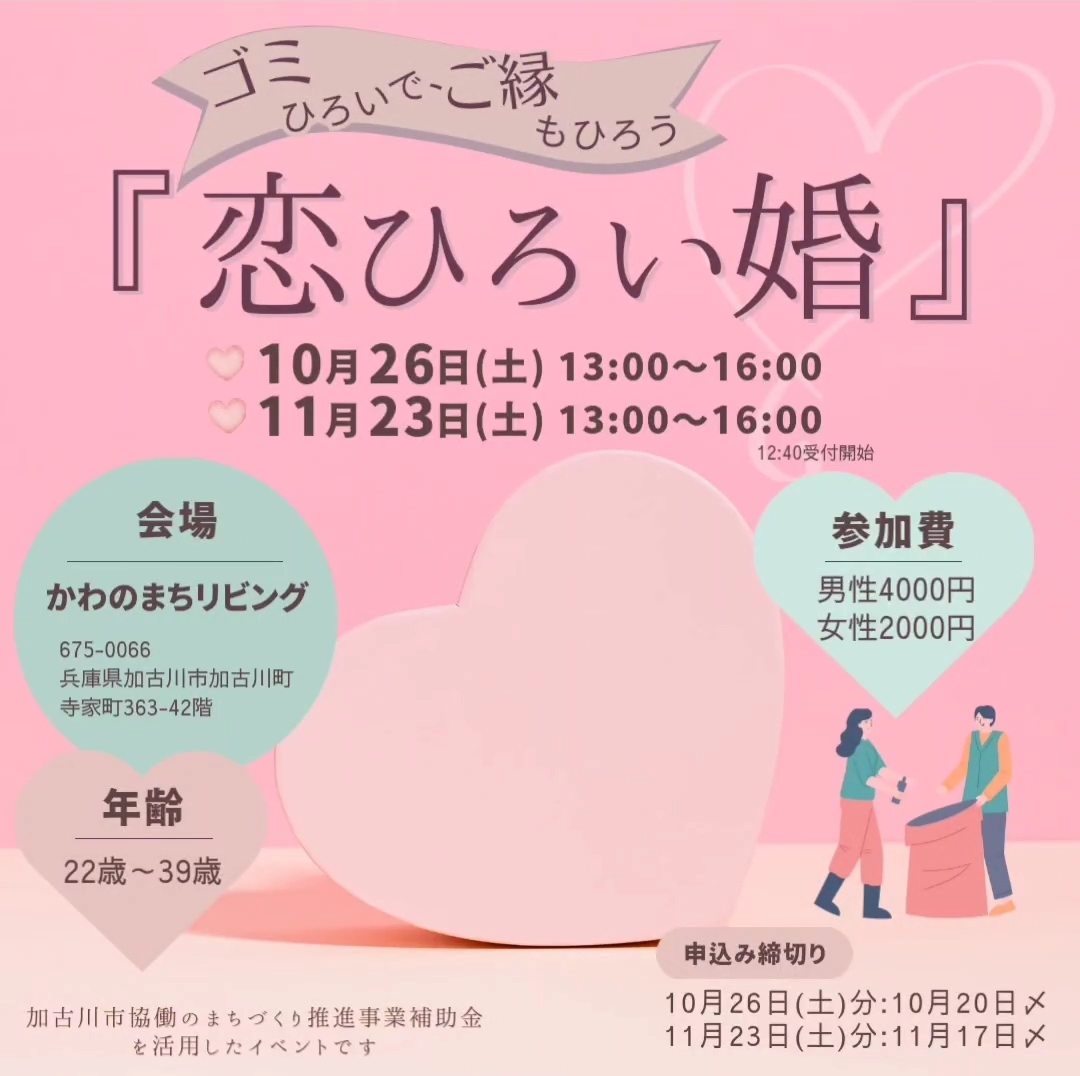 姫路でゴミ拾いボランティア活動されている方と結婚相談所とのコラボイベントは超大人気!!毎回、満員御礼!!