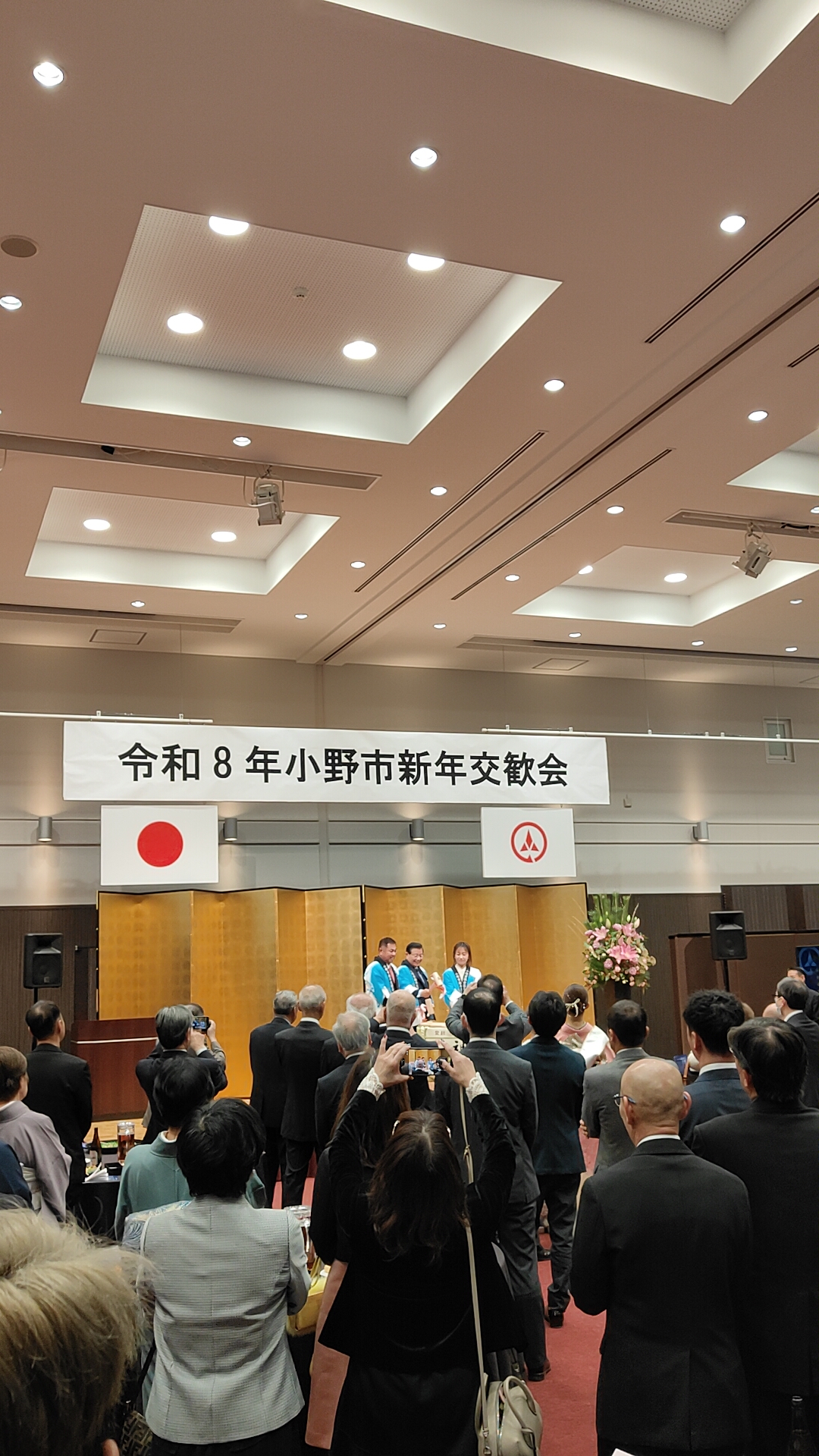 行政関係者の方々、地域団体、事業者など、立場や分野を越えて多くの方が一堂に会し、新年のご挨拶を交わしながら交流を深める姿に、小野市という地域の結束力と人のつながりの強さを感じました。