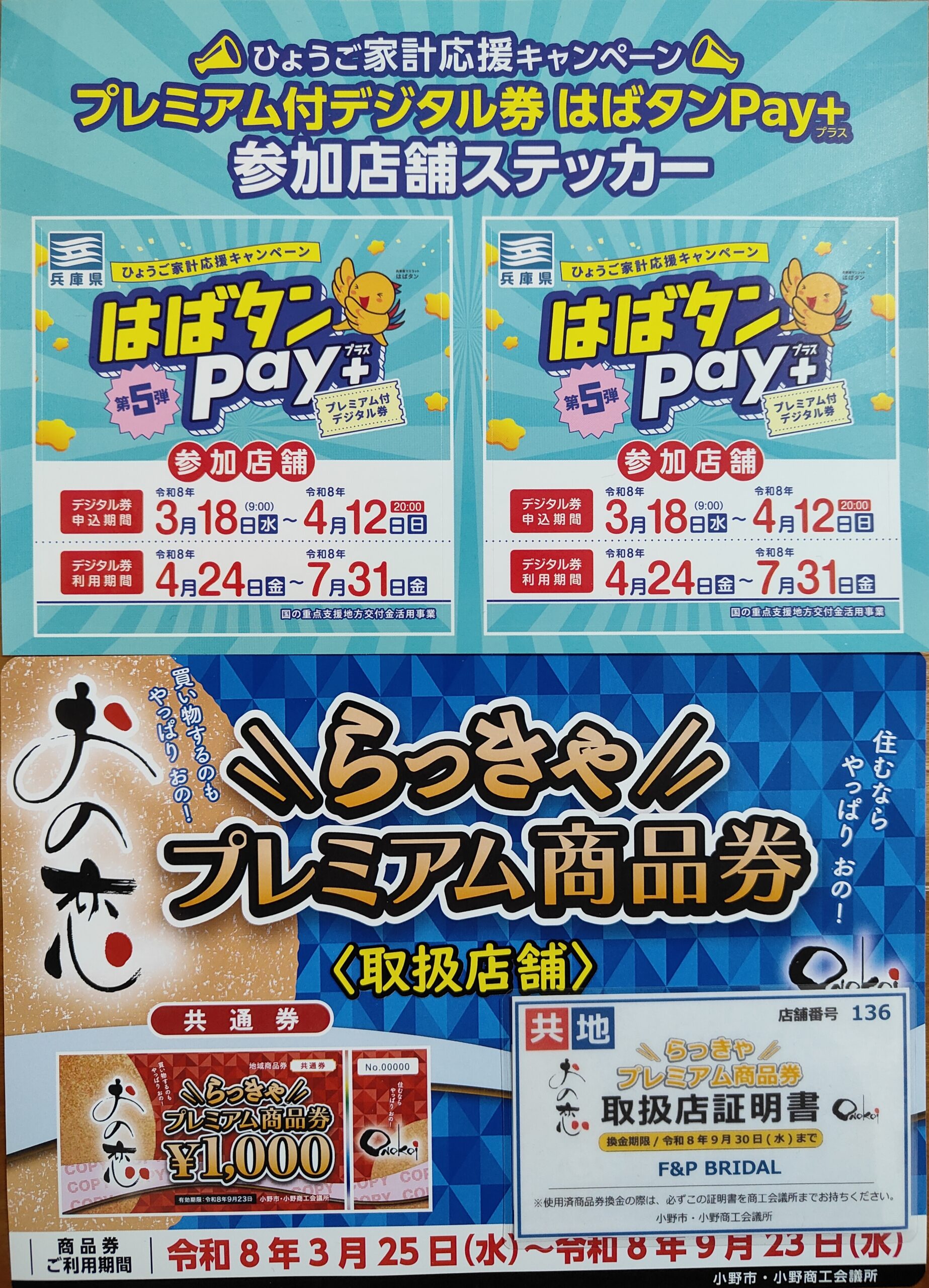 らっきゃらっきゃ券は、小野市が発行するプレミアム商品券で、地域の消費活性化を目的とした制度です。